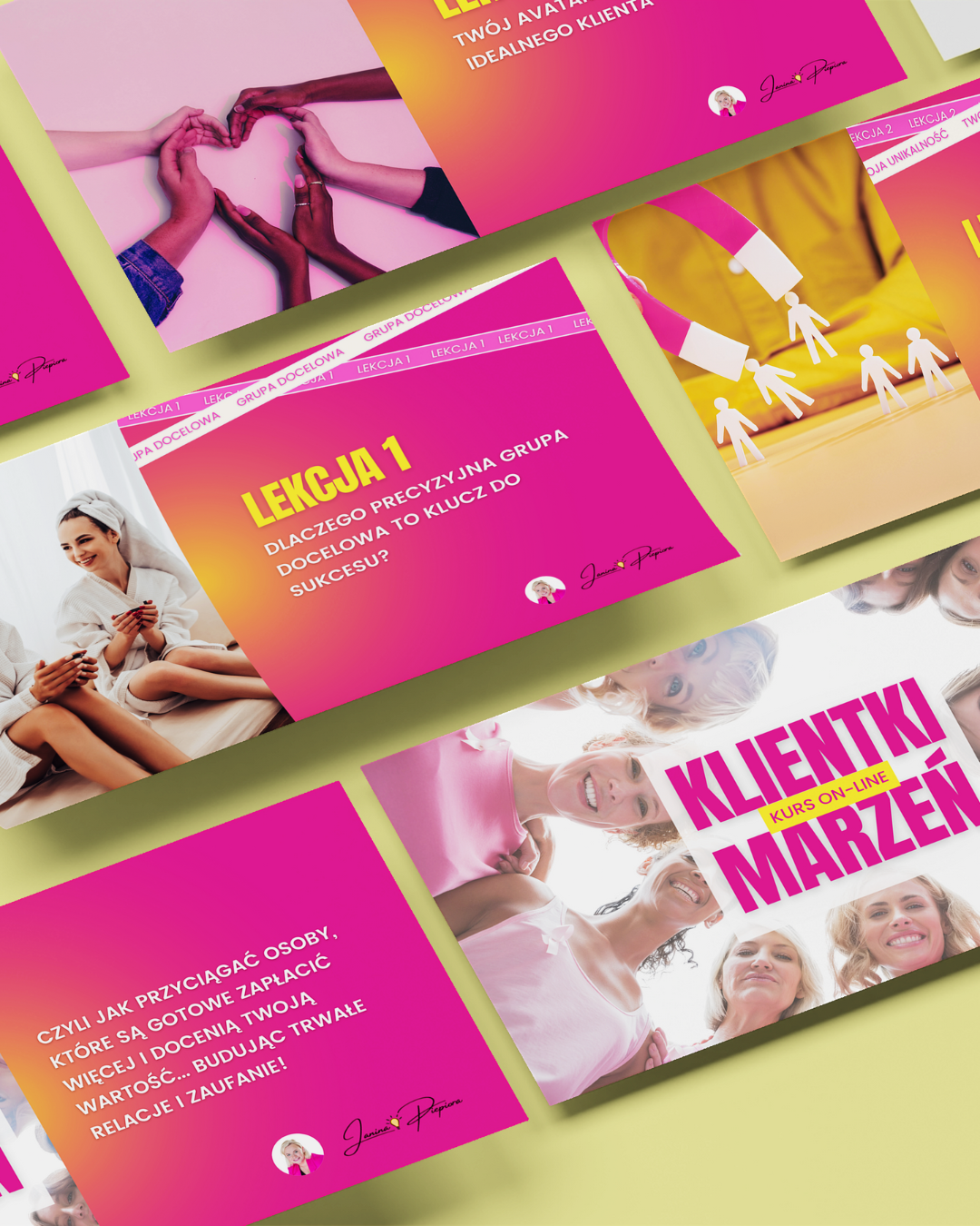Ale oferta oprawy kursu online do tego była strzałem w dziesiątkę. Bardzo zależało mi na tym, żeby kurs miał swój rozpoznawalny wizerunek, a jednocześnie był w pełni spójny z resztą oprawy graficznej marki.