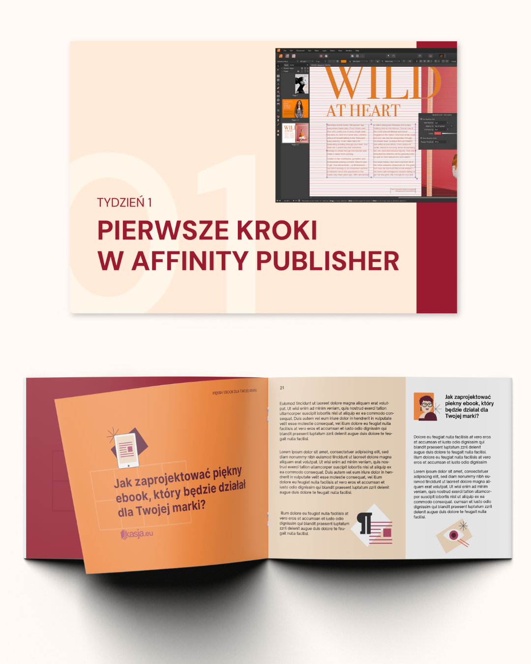 Zgłosiłam się do Kasi, aby pomogła mi stworzyć projekty graficzne do mojego kursu. Miałam w głowie zarys, ale cokolwiek nie tworzyłam, to wciąż nie było „TO”. Ciągle czegoś mi brakowało – poprawiałam własne grafiki w poszukiwaniu tego „czegoś”…