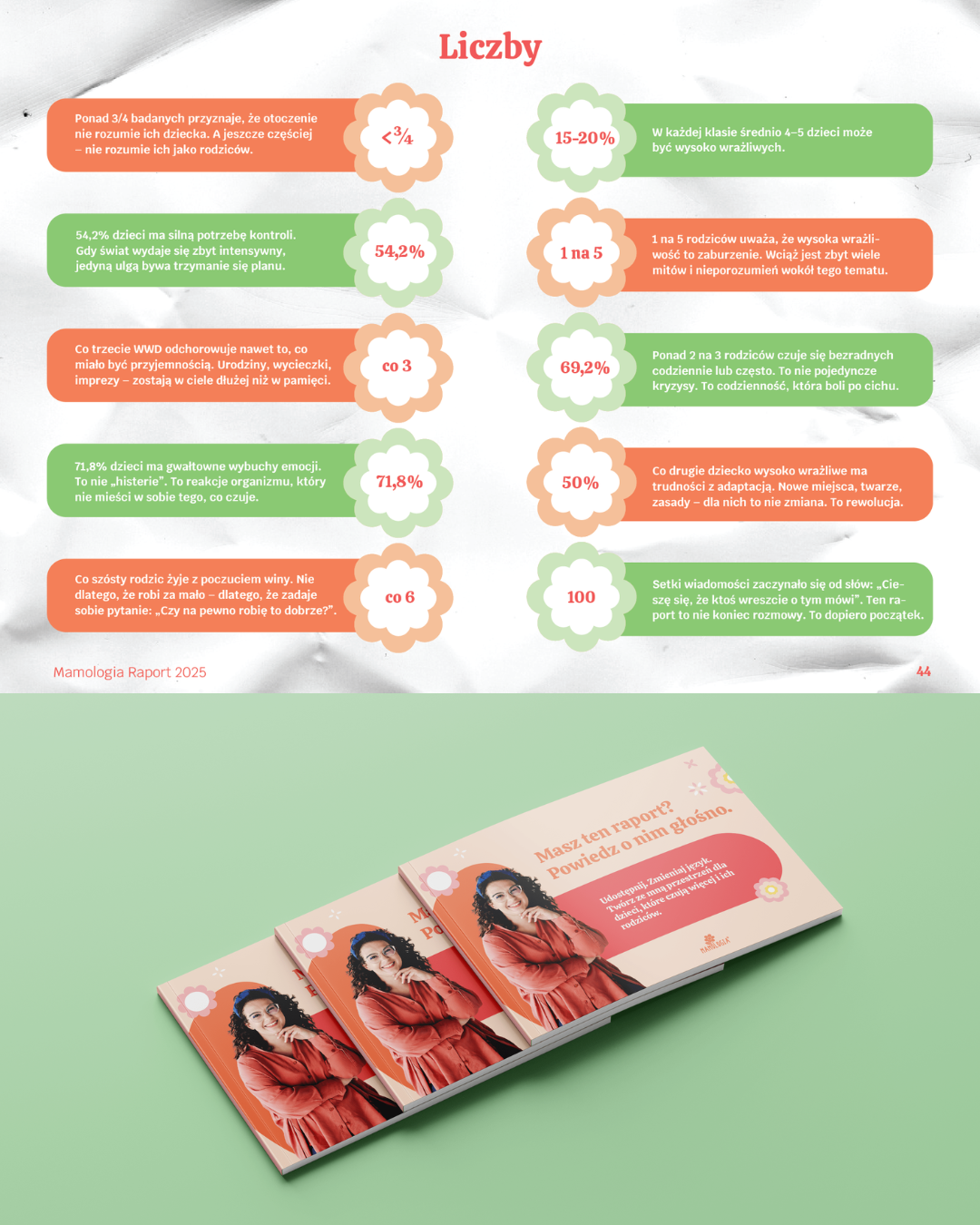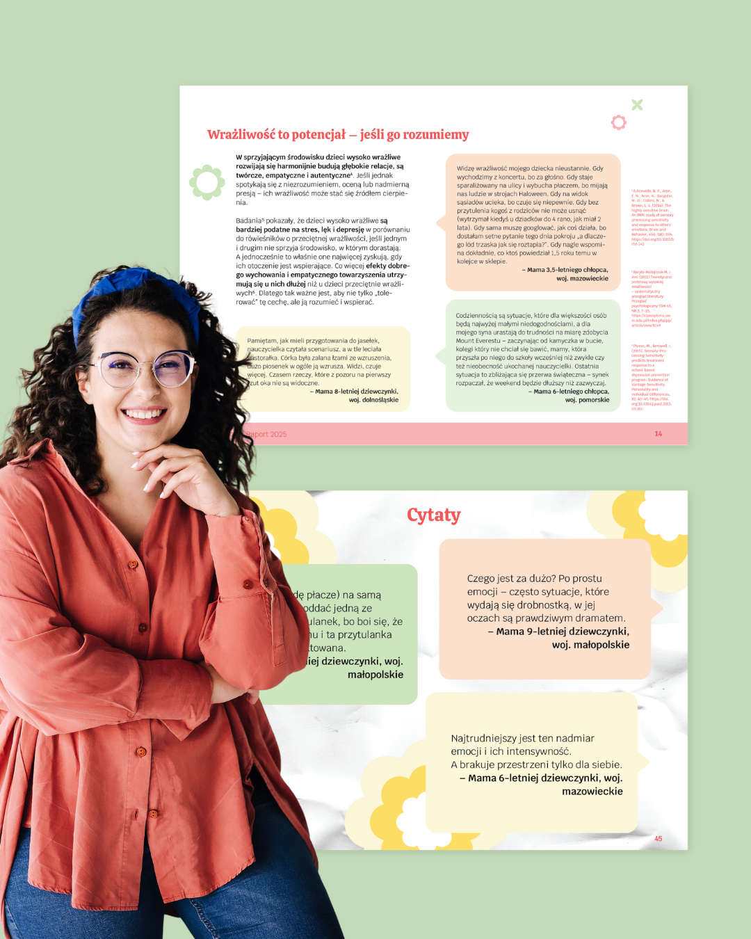 Zgłosiłam się do Kasi, ponieważ zależało mi na stworzeniu raportu o wysokiej wrażliwości dzieci, który będzie nie tylko merytorycznie wartościowy, ale też piękny wizualnie – spójny z moją marką i przyjazny w odbiorze dla czytelników. Szukałam osoby, która pomoże mi ubrać moje treści w formę, która będzie jednocześnie estetyczna, profesjonalna i autentyczna.