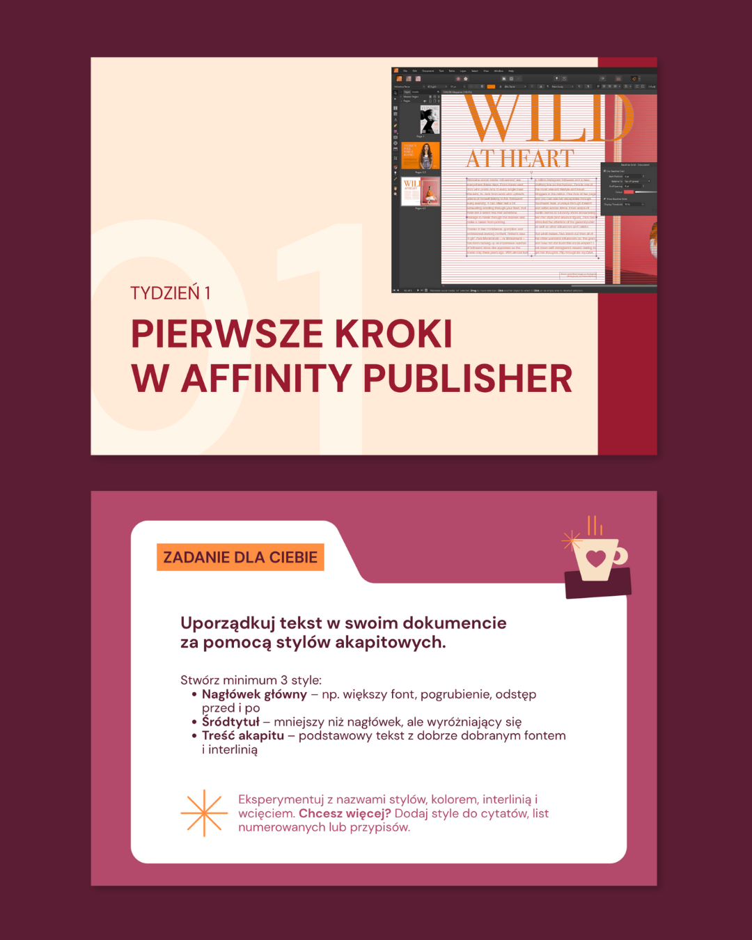 Styl kursu może być identyczny z Twoją marką albo mieć nowy, świeży, ale wciąż spójny z nią charakter – dopasowany do tego konkretnego produktu.